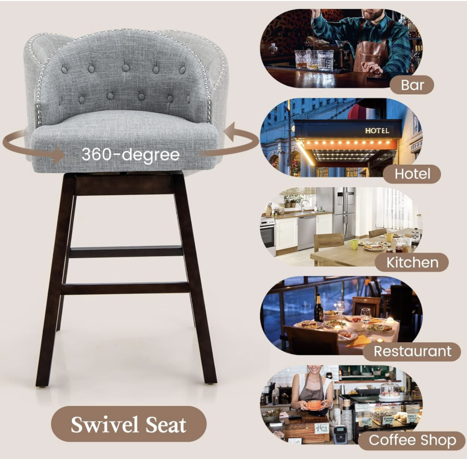 - Calidad mejorada y asiento suave: mejorado con base expandida (el ancho del asiento aumentó de 18 a 21.5 pulgadas, cojín grueso de 4.5 a 5.5 pulgadas) y madera de caucho natural, la silla de bar es resistente, resistente al desgaste y duradera. El cojín del asiento relleno de esponja y resortes de alta elasticidad es más suave, más transpirable y cómodo, lo que alivia la fatiga de todo el día.