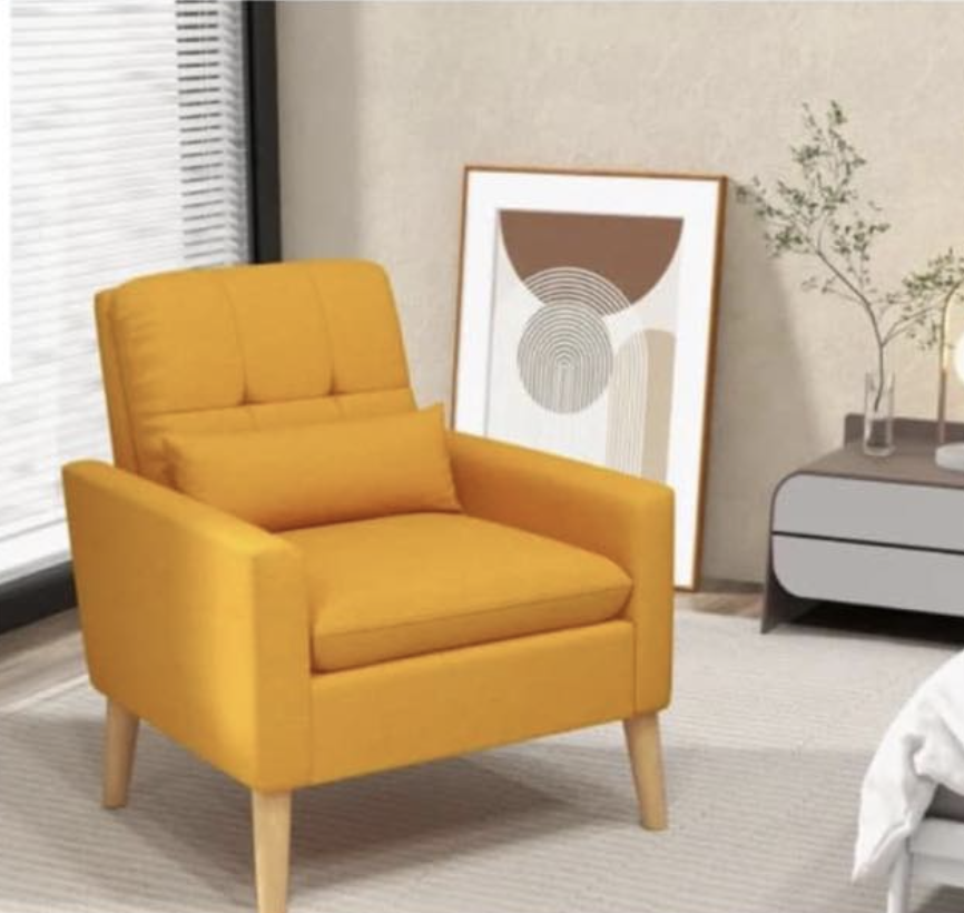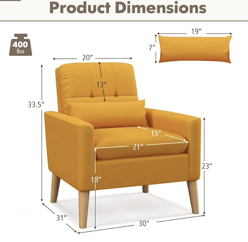 • Experiencia de asiento acogedora: tapizada en tela de lino agradable al tacto, esta silla de sofá individual cuenta con esponja elástica y resortes integrados para ofrecerle comodidad y apoyo. La amplia zona de asientos de 21 pulgadas de ancho x 15 pulgadas de profundidad también te permite sentarte cómodamente para relajarte.